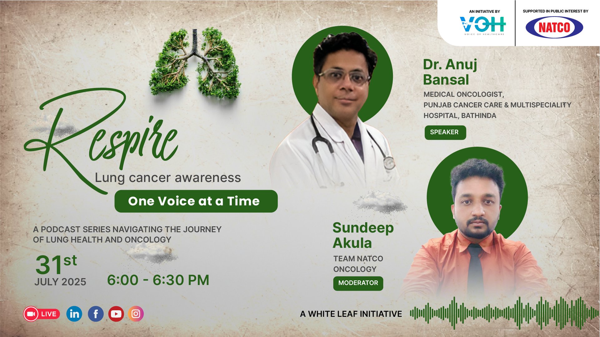 Be part of a critical conversation on Respire, the lung cancer awareness podcast series by Voice of Healthcare, supported in public interest by NATCO.